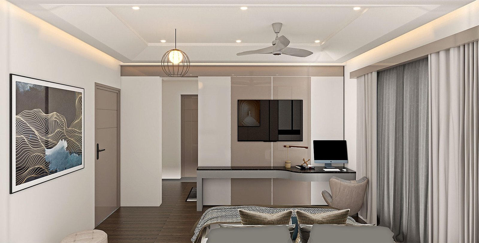 Tan, White, and Walnut Modern Floor-Mounted TV Unit Design